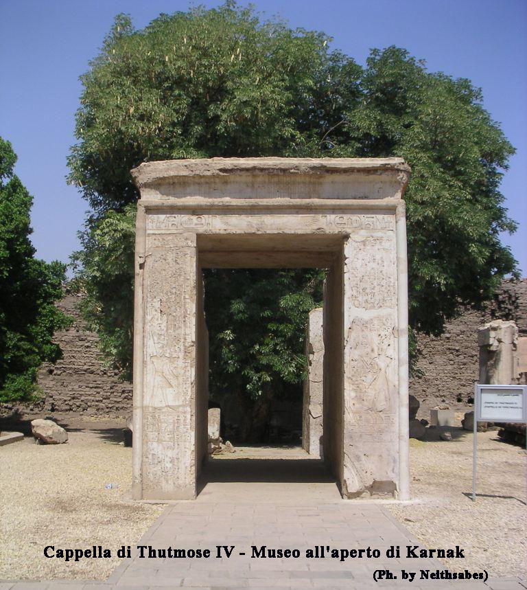 Sempre a Karnak Thutmosi IV fece costruire una cappella di alabastro con sala peristilio destinata alle persone “che non avevano diritto di accesso al tempio principale di Karnak”, era il “Luogo dell’orecchio” per il dio Amon, dove il dio poteva ascoltare le preghiere del popolo. La cappella, ricostruita dalla missione francese Centre Franco-Egyptien D’etude des Temple de Karnak è oggi inserita nel Museo all’aperto di Karnak.