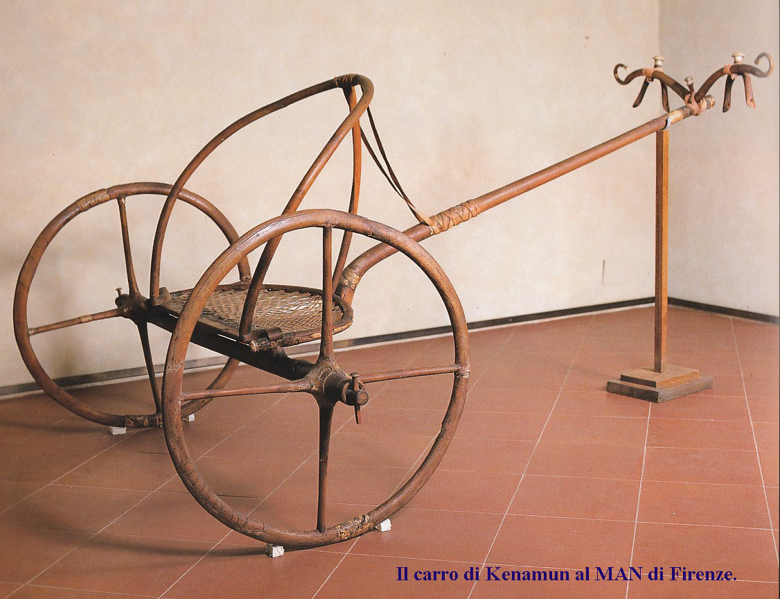 La spedizione di Champollion e Ippolito Rossellini, giovane professore pisano, del 1828, che oltre a riportare in patria disegni e riproduzioni di testi geroglifici, portò anche un “bottino” di settentasei casse di reperti tra i quali si trovava, smontato il cocchio di Kenamun che oggi è possibile ammirare nelle sale del Museo Egizio di Firenze. Anche la storia della mummia di Kenamun è piena di fascino e mistero, giunta in Toscana nel 1829 sparì e non venne più ritrovata finché nel 2013, inspiegabilmente ed in modo del tutto casuale venne rinvenuta nel Museo di Storia Naturale di Calci, (piccolo comune in provincia di Pisa) sotto le spoglie di uno scheletro.