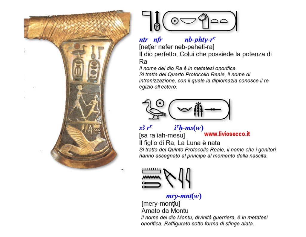 La celeberrima arma di Ahmose rappresentata è uno dei reperti più famosi dell’inizio della XVIII Dinastia.
