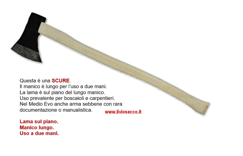 Aggiungo anche un dettaglio oplologico poiché il reperto è spesso accompagnato con definizioni errate: si tratta di un’ACCETTA, non di una scure né, peggio, di un’ascia.