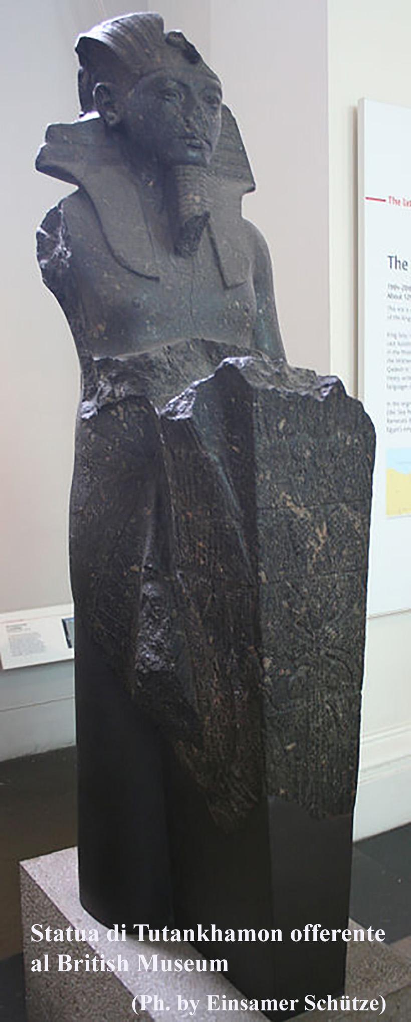 E siamo arrivati al più famoso ma insignificante faraone, non solo della XVIII dinastia, ma poverino, era un bambino o poco più, per governare l’Egitto ci vuole ben altro. Questo lo aveva capito benissimo il marpione Ay che riuscì a salvarsi dalla persecuzione dei seguaci di Aton e non solo, ma riuscì a portare la situazione a proprio vantaggio. Personaggio molto potente oltre a staccarsi dall’Aton riuscì a mantenere il diritto alla successione al trono all’erede di Akhenaton, Tutankhamon ovvero “Immagine vivente di Amon”, nonostante questi avesse tra i nove e i dieci anni.