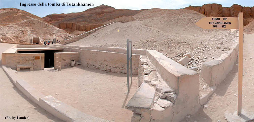 Tuankhamon fu sepolto nella Valle dei Re nella tomba KV62 dove venne trovato da Howard Carter nel novembre 1922 mentre lavorava ad una missione per conto di George Herbert, V, Conte di Carnarvon. Fortunatamente la tomba era sfuggita ai profanatori in quanto l’ingresso rimase sepolto sotto le macerie prodotte durante la costruzione della tomba di Ramses VI, la KV9, costruita oltre 200 anni dopo, cosa che dimostra che già a quell’epoca della tomba di Tutankhamon si erano perse le tracce.