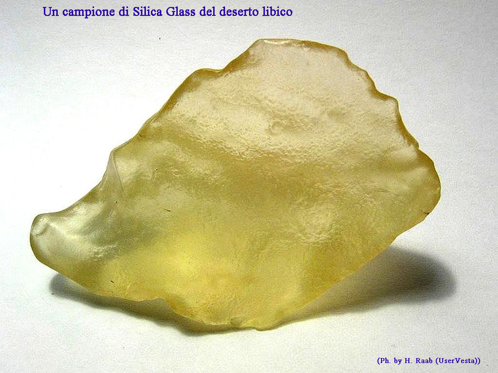 Sul come si è formato esistono due teorie, secondo la più accreditata si tratterebbe del risultato di un violento impatto di un enorme meteorite che generò un forte calore che fuse enormi quantità di sabbia silicea producendo questa specie di vetro che si trova disseminata su una vastissima area del Deserto Libico Orientale ed in parte del territorio egiziano. Un’altra teoria, meno accreditata, ipotizza invece che si sia trattato di un enorme meteorite siliceo che sia esploso in aria spargendo ovunque questi frammenti fusi. L’evento è stato datato a 26-28 milioni di anni fa. Una leggenda egiziana racconta che queste pietre erano un “dono degli Dei”, un vero dono piovuto dal cielo per il faraone fanciullo