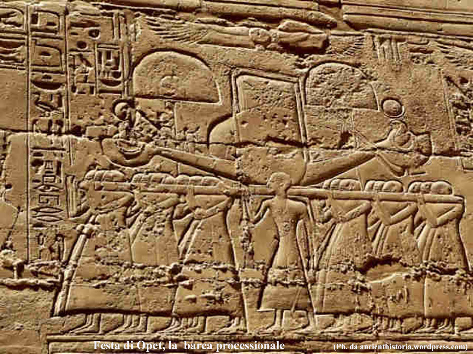 La Festa di Opet aveva, tra gli altri, lo scopo di rinnovare il diritto del Faraone, in quanto figlio di Amon-Ra, a guidare il suo popolo mantenendo stabilità e benessere alle Due Terre. E qui emerge la prepotenza trionfale di Ramses II che, caso unico nella millenaria storia della monarchia egizia, officiò egli stesso come Primo Profeta di Amon, poiché il titolare era deceduto poco tempo prima.