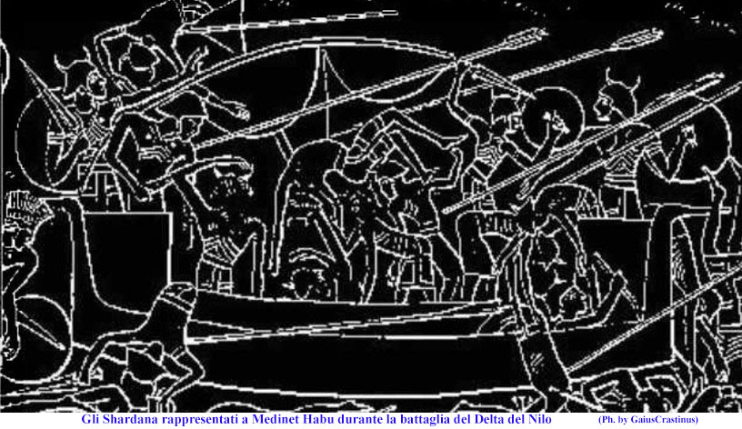 Gli Shardana depredavano la costa dell’Egitto, le bocche del Nilo e più in generale il Delta, inoltre i loro continui attacchi ai mercantili egizi compromettevano le relazioni commerciali sia in uscita che in entrata. Non è mai stato chiarito quale fosse la regione di provenienza del popolo Shardana, forse dalla costa ionica, forse dalla zona sud-occidentale della Turchia, alcuni studiosi hanno ipotizzato che, in virtù dell’assonanza del loro nome, provenissero dalla Sardegna. Con grande abilità strategica Ramses II tese loro una trappola, con uno strattagemma riuscì ad attirare in un unico punto l’intera armata Shardana che, colta di sorpresa non ebbe scampo. Con questa mossa Ramses II riuscì a catturare un ingente numero di Shardana ai quali risparmiò la vita in cambio del loro arruolamento come mercenari nelle file dell’esercito egiziano fino a diventare in seguito le sue guardie personali.