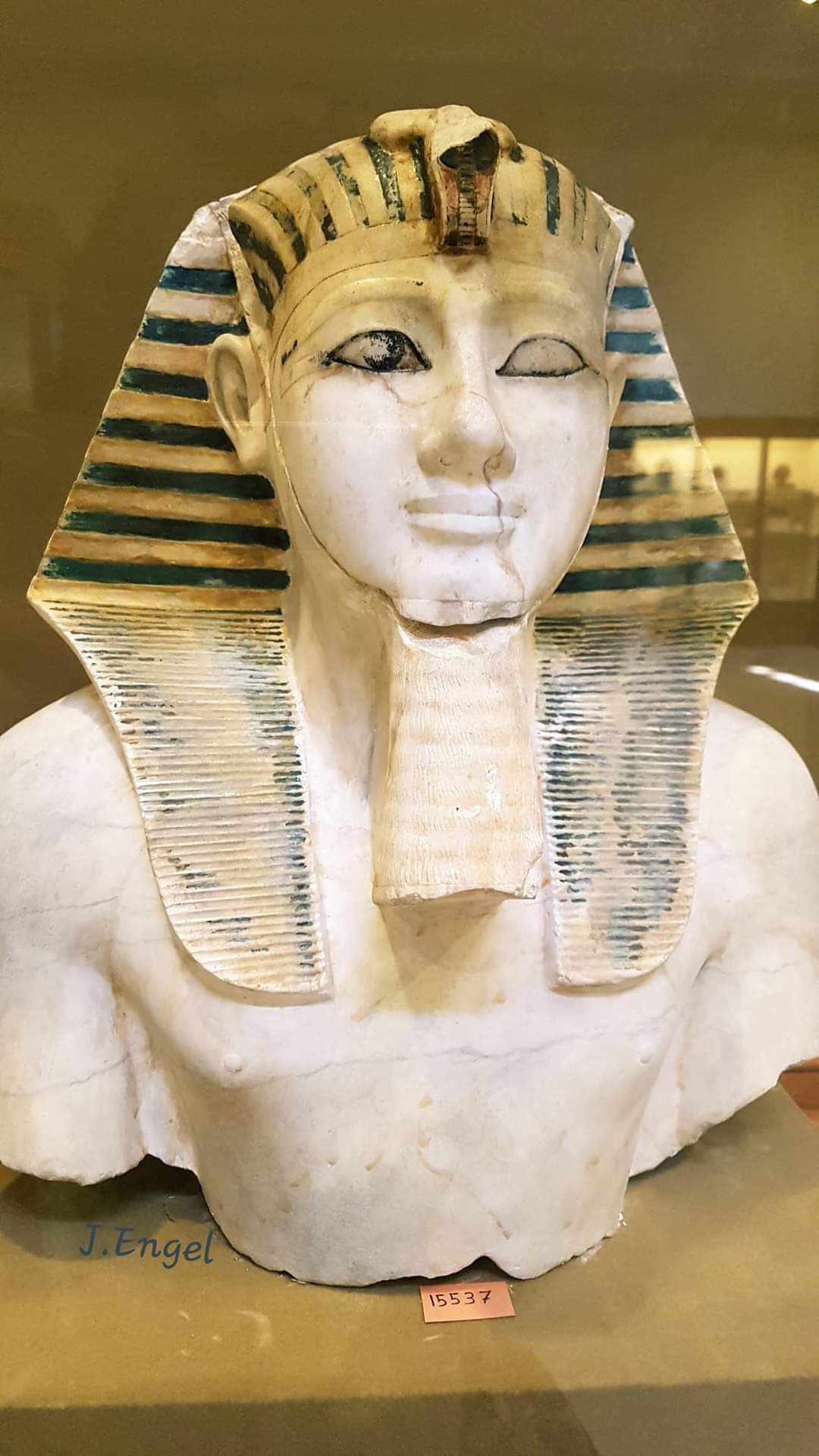 During the 1960’s Polish excavations at the Temple of Thutmose III, a chipped off face of the king was discovered, the face was broken off in antiquity.