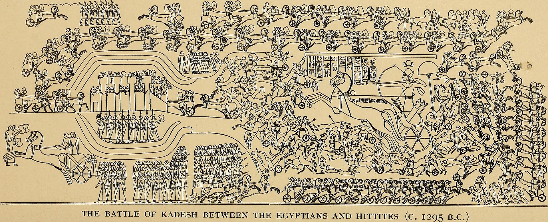 Quando ritenne di possedere un forte esercito in grado di rivaleggiare e vincere contro quello Ittita di Muwatalli, Ramses II partì da Pi-Ramses, attraversò la terra di Canaan e si preparò a fronteggiare il nemico.