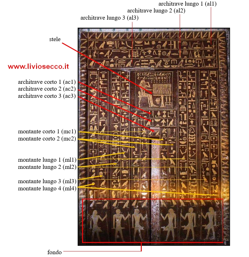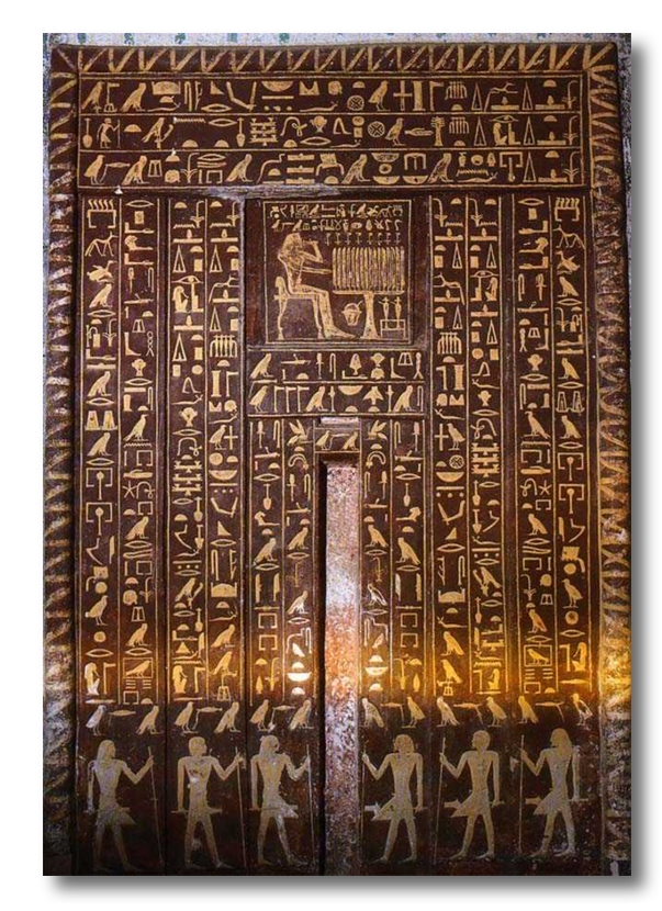 Si tratta della falsa porta di Mehu. Sforzatevi a riconoscere i diversi elementi e la loro direzione di lettura. Qui sotto vi dettaglio la soluzione: