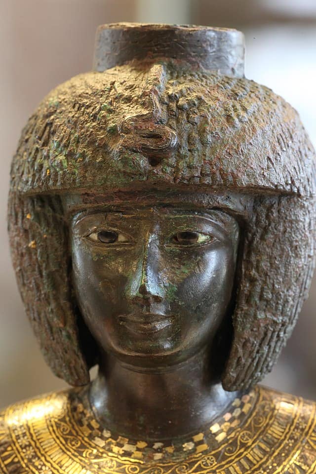 Il suo titolo la poneva a capo delle più alte gerarchie religiose e le assicurava un potere enorme, specie, nell’area tebana. La sua preziosa statua è un esempio delle nuove tecniche della lavorazione del metallo nel terzo periodo intermedio; si sviluppano Infatti sia la fusione del bronzo che le incrostazione di metalli preziosi.