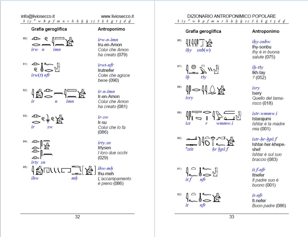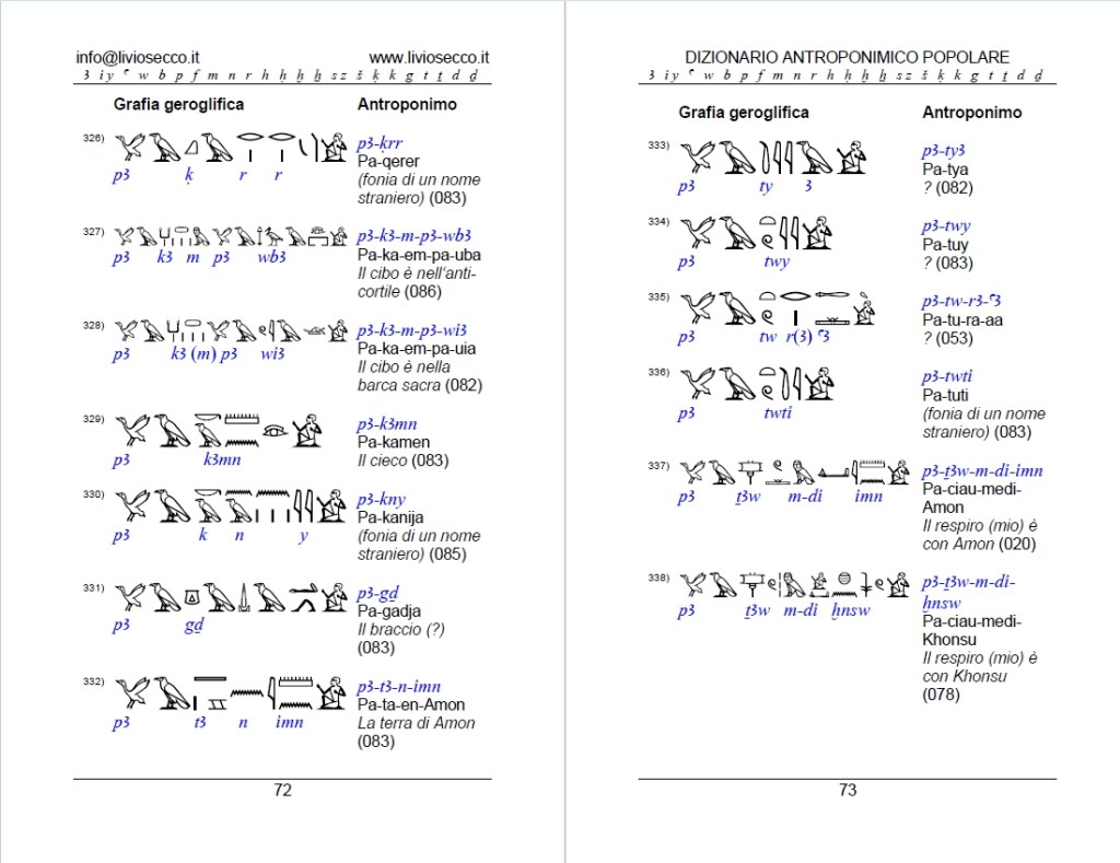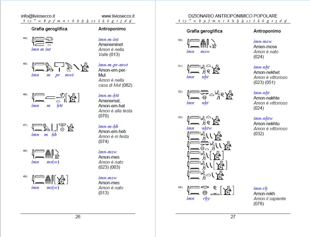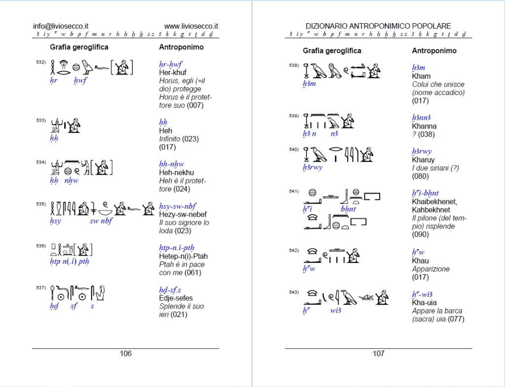 Per coloro che volessero approfondire l’argomento non posso che consigliare la lettura del quarto volume della Collana “Laboratorio di Filologia Egizia”: LdFe4 – DIZIONARIO ANTROPONIMICO POPOLARE reperibile qui: https://ilmiolibro.kataweb.it/…/dizionario…/