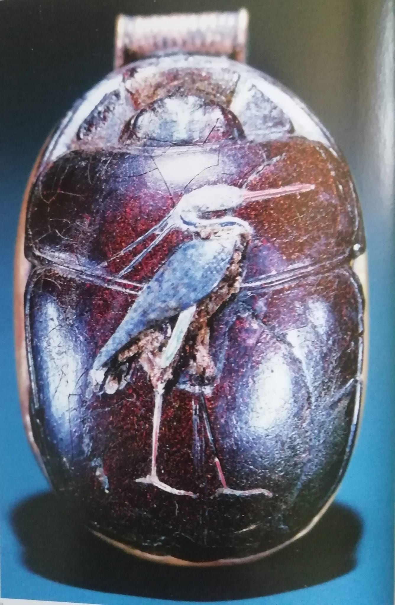 Lo scarabeo costruisce una sfera di sterco nella quale deposita le uova, nuovi scarabei nasceranno perciò nello sterco: la capacità di trasformare la materia più umile in nuove forme di vita diviene il simbolo della metamorfosi è delle diverse manifestazioni della realtà.