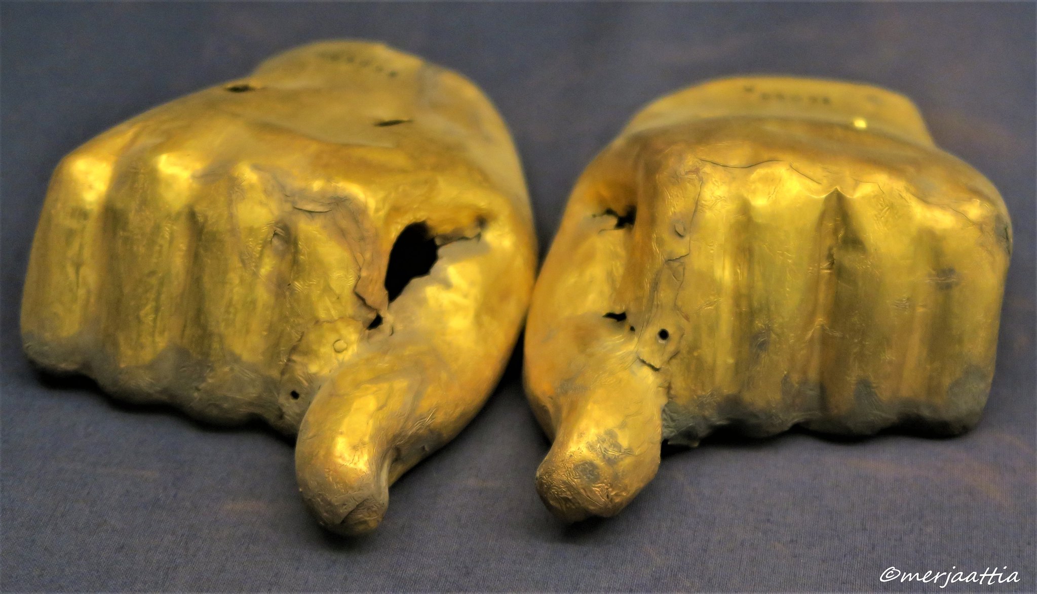 Le parti in legno sono della bara sono andate perse per sempre; sono sopravvissute però le coperture in oro delle mani del Faraone e la parte superiore della bara, costituita da una maschera d’oro (la terza trovata da Montet, e non sarà l’ultima).