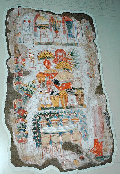 In altre scene il defunto offre, portate da piccole fanciulle, specchi e piccoli contenitori di kohl ai suoi genitori in presenza di musicisti tra cui un’arpista e un suonatore di liuto.