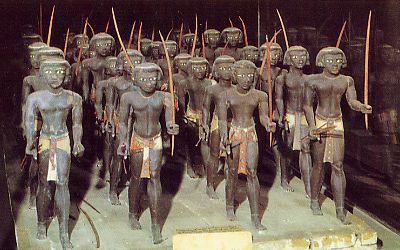 Accanto ad esso c’erano cinque frecce di canna e legno di acacia, con l’impennaggio ancora in buone condizioni; esse furono intenzionalmente spezzate in modo da non poter essere usate nell’Aldilà contro i defunti.