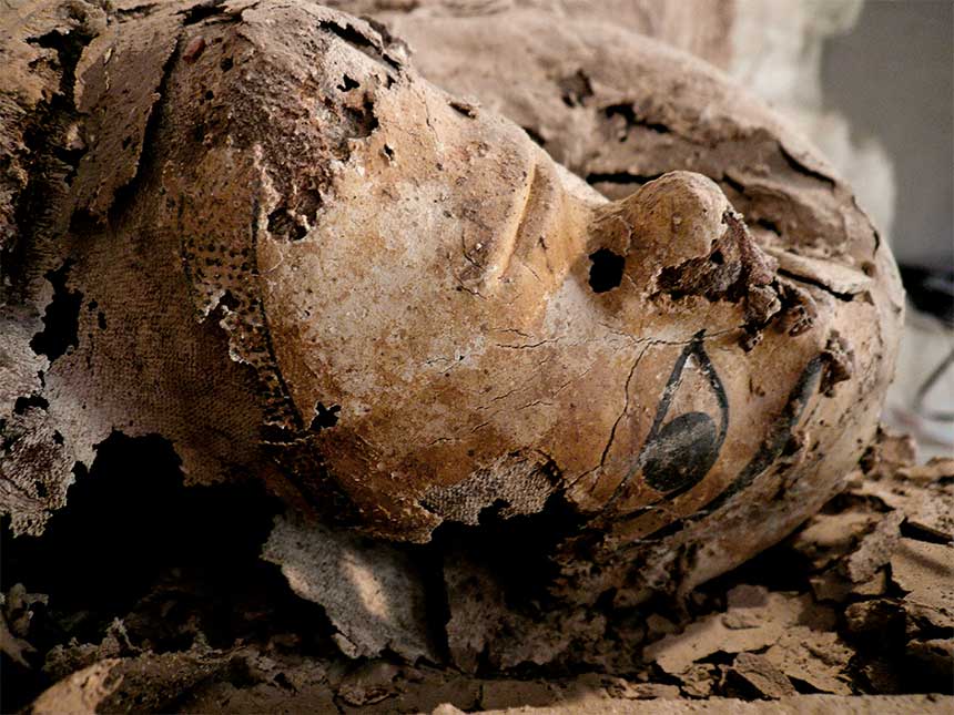 Nel corso dei secoli, l’acqua penetrò nella bara, causando inevitabili danni alla maschera in cartonnage ed al sudario che avvolgeva la mummia; nonostante i tratti nubiani di Iker, la sua maschera funeraria lo immortala con una carnagione gialla e una barba incipiente.