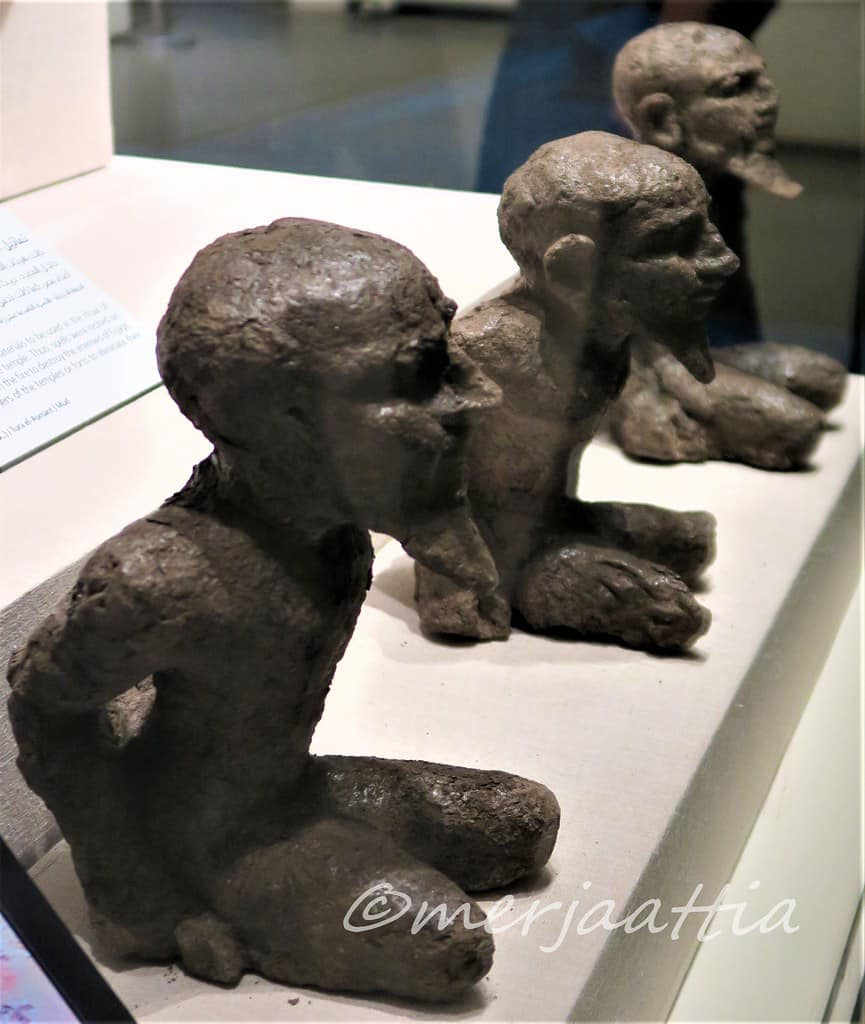 Queste statuine, realizzate in fango, sono state trovate a Tura-El-Asmant.NMEC