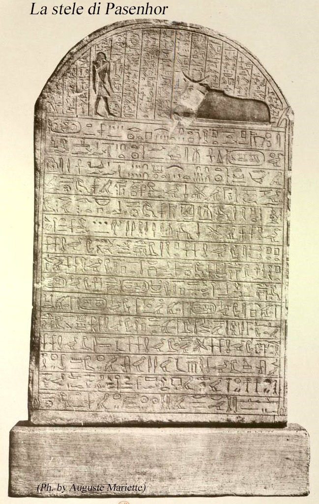 Che i Mashuash fossero di origini libiche lo apprendiamo anche dalla Stele di Pasenhor (detta anche Stele di Harpeson nella letteratura più antica); la stele risale all’anno 37 del regno di Sheshonq V (XXII dinastia) e venne rinvenuta nel Serapeo di Saqqara da Auguste Mariette nel 1851. Nella stele il sacerdote di Ptah e profeta di Neith, Pasenhor, descrive il rito al quale è chiamato ad officiare in occasione della morte di un toro Apis, con l’occasione riporta sulla stele la propria genealogia, risalendo per sedici generazioni, e sottolineando il fatto che il titolare della stele, (se stesso) è un discendente di “Buyuwawa il libico”. Esaminando poi i loro nomi, che come abbiamo detto sopra non cambiarono mai (Osorkon, Takelot, Nimlot, Sheshonq, ecc) non si può che prendere atto della loro reale provenienza libico/berbera.