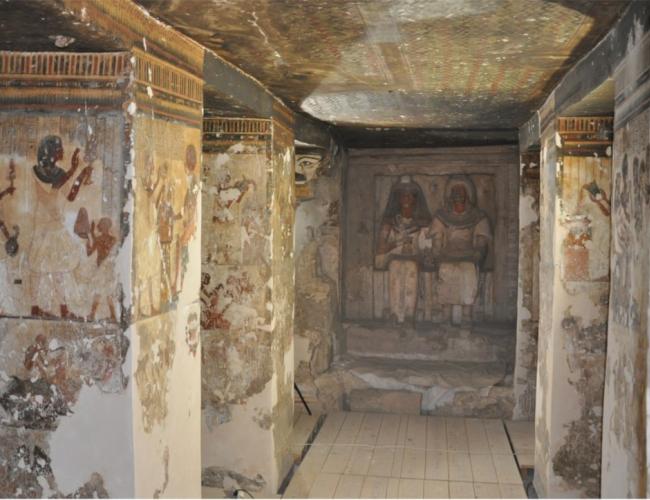 Un ampio passaggio conduce ad una sala che reca tre nicchie alle pareti, contenenti statue: una coppia (21) la cui identificazione non è possibile; ugualmente non identificabili i due personaggi di altra nicchia (22) sulle cui pareti il defunto offre libagioni a Osiride, in alto la rappresentazione di Hathor in atto di proteggere il re; sul fondo (23), le statue del defunto e della moglie seduti.