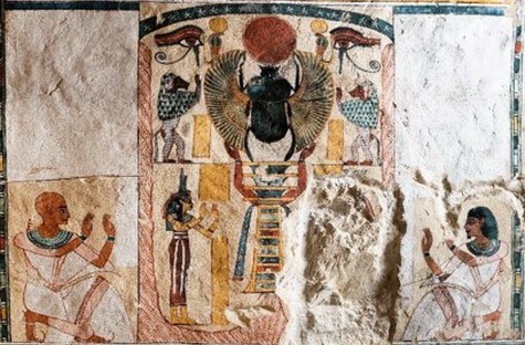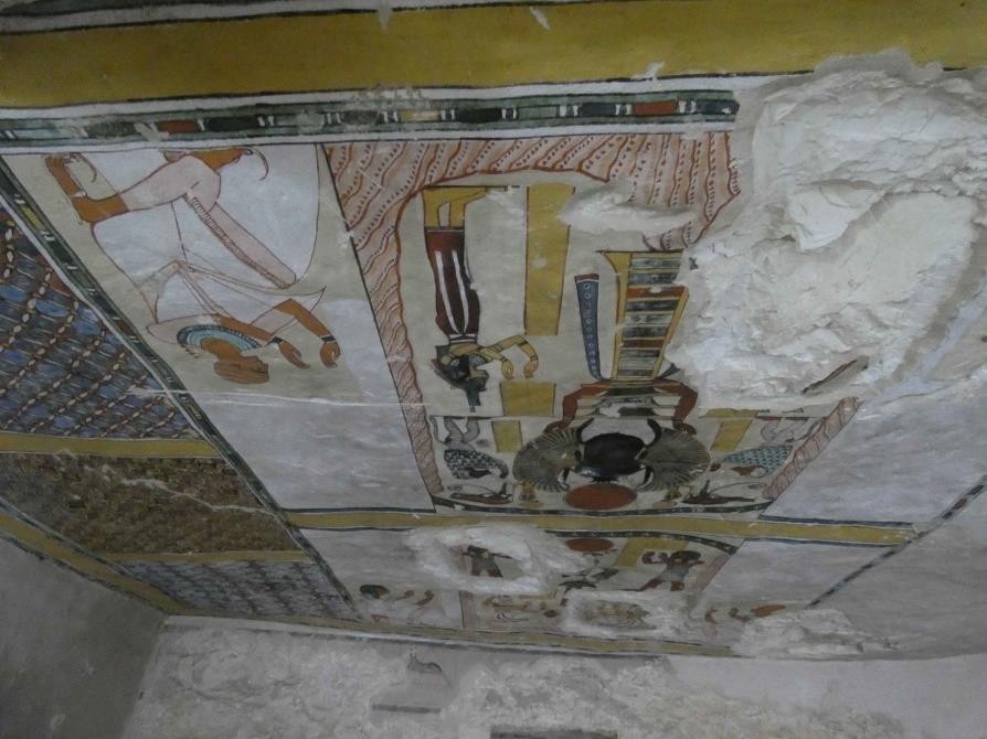 Sul soffitto uno scarabeo alato e le dee Iside e Nefti adorate da babbuini e dallo stesso defunto in ginocchio[5].