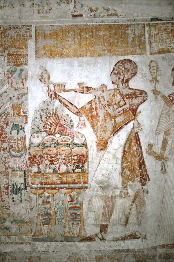 [30] La presenza di tale sovrano della XI dinastia, non legato alla famiglia del defunto, né per qualche motivo connesso al culto funerario, si giustifica con la presenza, nella piana di Deir el-Bahari, del suo tempio funerario. Benché affiancato, nella XVIII dinastia, da quello di Hatshepsut, il tempio di Montuhotep II veniva considerato di particolare importanza come forma di culto alle divinità dell’occidente, ovvero dell’aldilà. La stessa Hatshepsut fece costruire il suo tempio sullo stile proprio di quello di Montuhotep considerandolo un esempio della vera architettura egizia, prima della parentesi Hyksos da cui proprio la XVIII dinastia aveva tratto il Paese.