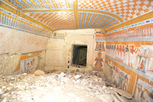 Nel dicembre 2007 un team di archeologi giapponesi guidati dal prof. Jiro Kondo della Waseda University di Tokyo, ha scoperto sulla riva occidentale del Nilo, nella necropoli tebana di El Khokha, la splendida tomba dell’alto dignitario Khonsu Em-Heb, che durante il regno di Amenhotep III (1387-1348 a.c.) era a capo dei depositi di grano e produttore di birra per il culto di Mut, la dea madre egizia.
