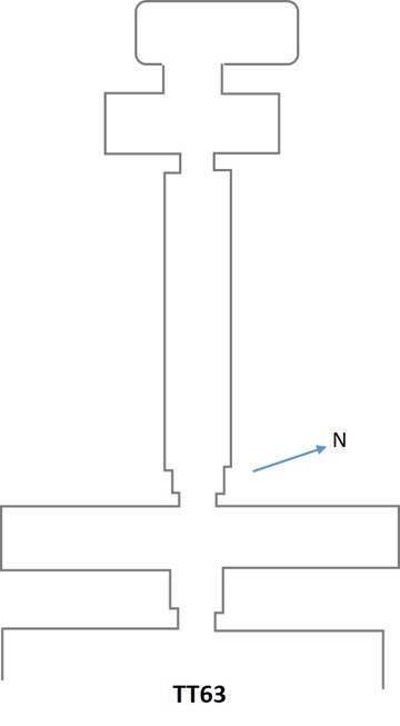 TT63 si sviluppa con forma a “T” rovesciata tipica di analoghe sepolture della XVIII dinastia. Ad un breve corridoio di accesso, in cui sono rappresentati il defunto e la moglie con un giovane figlio, e una donna che suona il sistro, segue un corridoio trasversale in cui i resti di due stele rappresentano il defunto in adorazione di Anubi, nonché soldati in marcia capitanati dallo stesso defunto ed un lungo testo molto danneggiato. In altre scene, il faraone Thutmosi IV assiso in trono che reca i Nove Archi sulla base[6]; il defunto accompagnato da Menna, Supervisore ai sigilli, e il defunto che ispeziona alcuni granai mentre uomini recano unguenti; sono presenti anche i resti di testi relativi alle ispezioni agli incensi e alle giare (forse di vino). Si è inoltre a conoscenza della presenza, poiché asportate, di rappresentazioni di popoli stranieri, tra cui nubiani e asiatici, nell’atto di versare tributi a Sobekhotep, alla presenza del re[7].