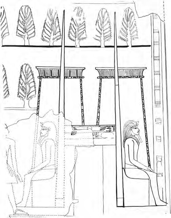 Un corridoio dà accesso ad una sala trasversale non perfettamente ortogonale all’asse della tomba, comunque in linea con le planimetrie delle tombe del periodo. Uno dei dipinti parietali rappresenta il defunto, con figli e aiutanti, che ispeziona alcuni magazzini di Amon, nonché alcuni atelier di scultori e orafi, ed assiste alla pesatura di oro. In altre scene, il defunto controlla le forniture di grano, il raccolto e costruttori di carri.