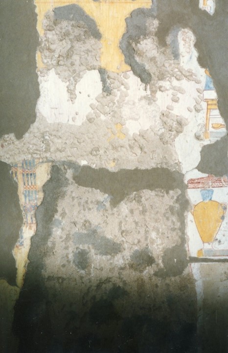 Dei quattro pilastri, tre recano dipinti leggibili: su uno il defunto e la moglie, nonché testi sacri relativi alla Bella Festa della Valle; su un altro il defunto e la moglie in offertorio e, a loro volta, oggetto di offerte da parte di tre portatori di doni; sul terzo il defunto e (forse) la moglie si reca ad “adorare il disco solare”.