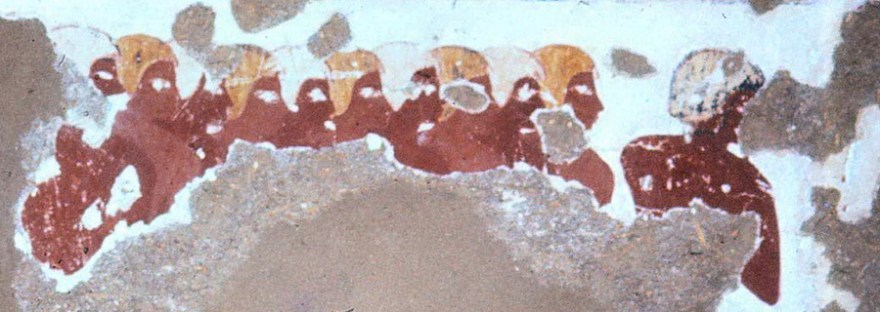 Un’ultima scena della sala trasversale vede il defunto (?) capeggiare una scorta militare per il re Thutmosi IV.