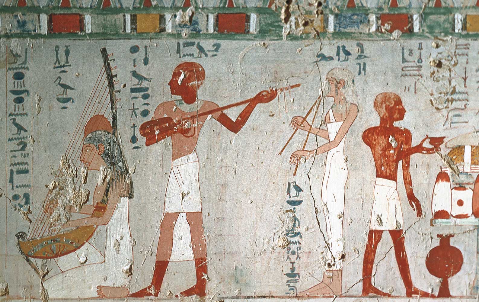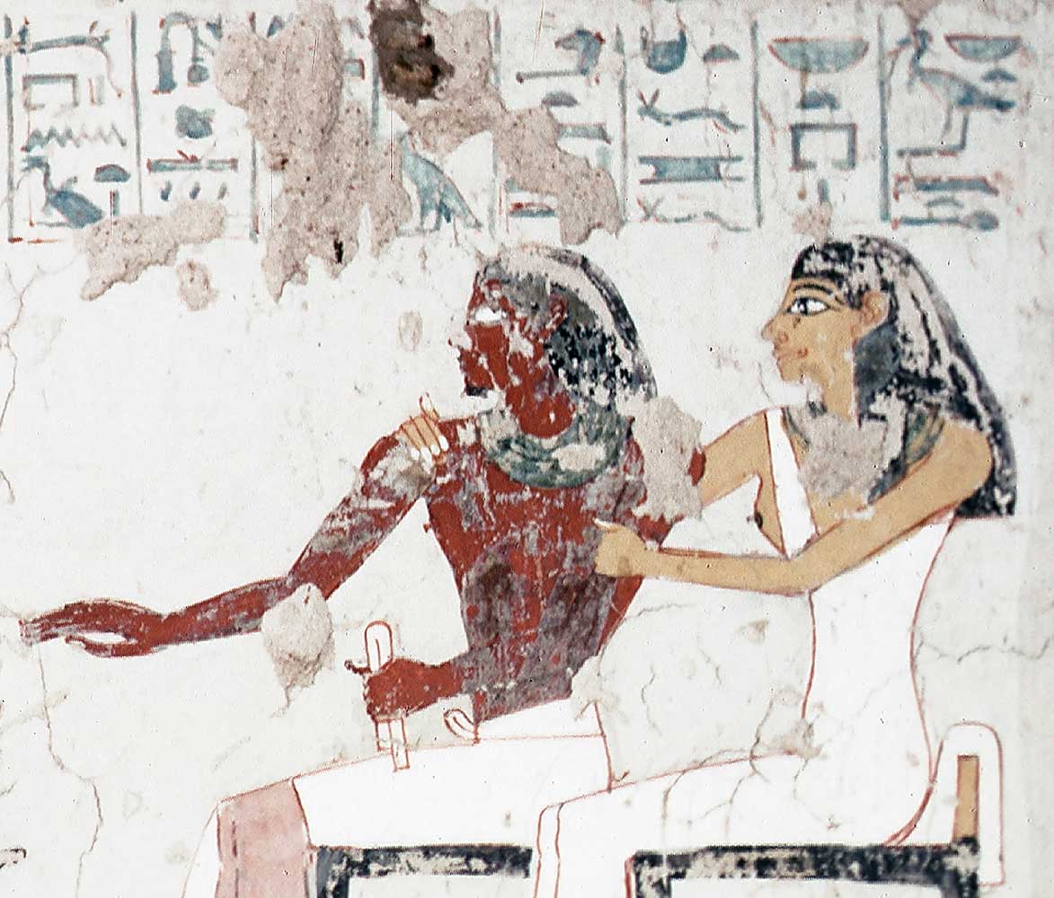 In altra scena (4) il defunto offre cibo ai suoi antenati nonché all’architetto e agli artisti che hanno decorato la sua tomba; in altra scena ancora (5) il defunto, la moglie e il figlio Amenemhat a banchetto per la festa del Nuovo Anno, mentre alcuni musicisti si esibiscono (una flautista, una suonatrice di nacchere, fanciulle che battono le mani, una danzatrice e un arpista).