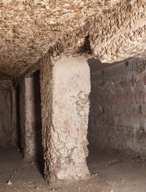 Su uno dei pilastri, i riti della Cerimonia di apertura della bocca officiati sul defunto da un prete. Sull’architrave che congiunge i due pilastri centrali, doppia scena del defunto che adora Osiride e Anubi.