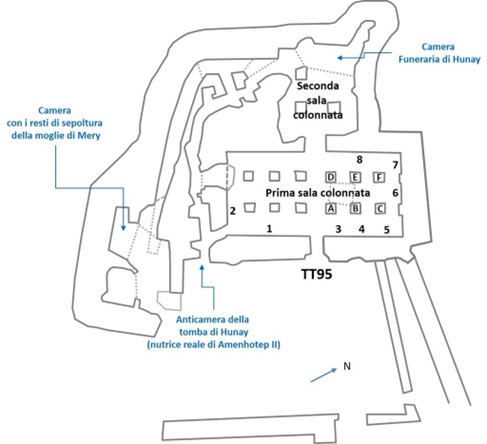 TT95 venne progettata ambiziosamente ripartita in quattro unità architetturali che riflettono, attualmente, i vari stadi di costruzione e sono indicate con le sigle TT95A, 95B e 95C.