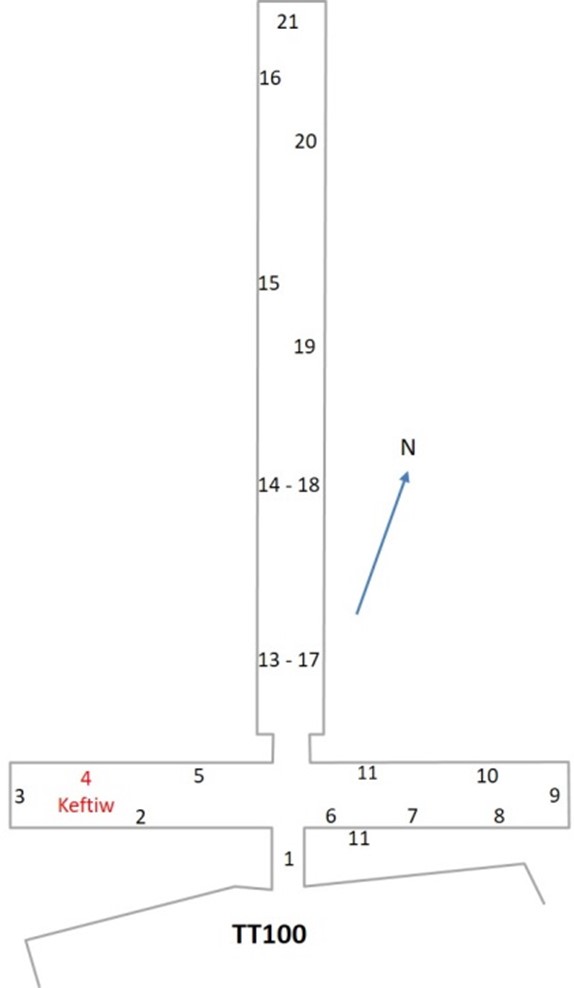 Analogamente la TT100 ospita una stele (n.ro 3 in planimetria) che contiene un testo autobiografico ben preservato che reca anche ammonimenti del re al visir (dall'”Autobiografia di Rekhmira”):
