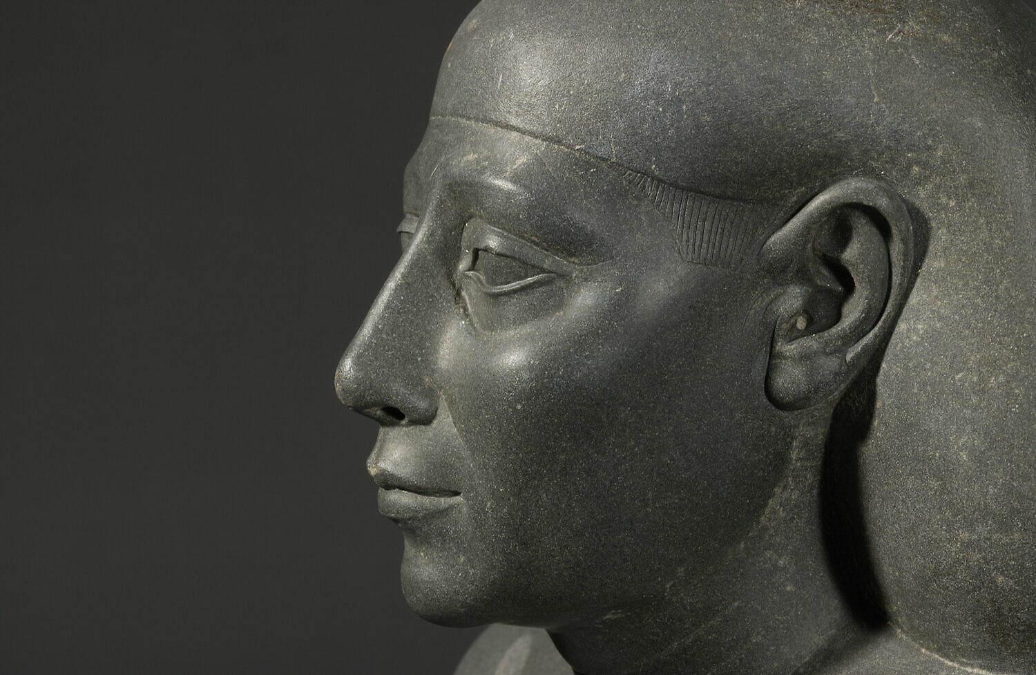 Tuttavia, il volto ben modellato e lievemente cascate, nonostante la sua pienezza, le “zampe di gallina” agli angoli degli occhi, il lieve doppio mento e le pieghe sul collo, nel loro distacco dalla pura idealizzazione, ricordano la ritrattistica del Medio Regno.