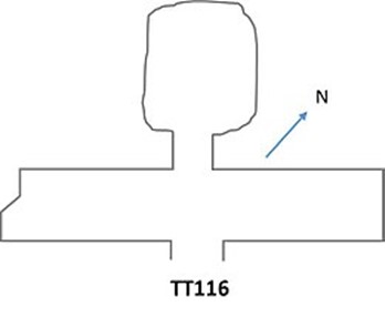 La TT116, che ripete la struttura a “T” rovesciata tipica del periodo presenta pochi dipinti parietali leggibili: in uno il defunto e la moglie ricevono libagioni da una figlia; poco oltre, il defunto e la moglie offrono fiori a Thutmosi IV, ma il nome del re è stato poi sostituito con quello di Amenhotep III. Secondo Nadine Cherpion, tuttavia, si tratterebbe di una sovrapposizione del nome di Thutmosi IV su quello di Amenhotep II; la tomba sarebbe quindi da retrodatare a cavallo dei regni di questi due Faraoni.