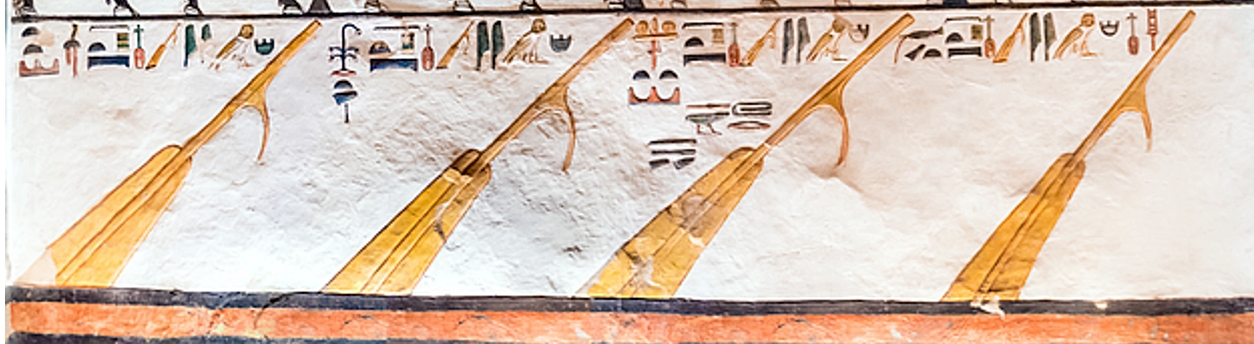 I quattro remi raffigurati nel terzo registro orizzontale della pittura parietale del lato SUD del primo annesso laterale orientale della QV66 di Nefertari rappresentano i Quattro Timoni del Cielo e sono in rapporto con il Capitolo 148 del Libro dei Morti.