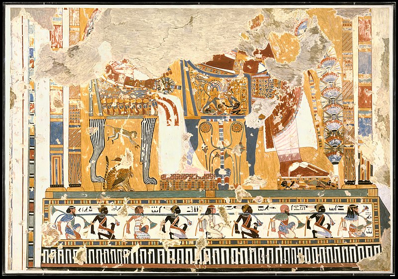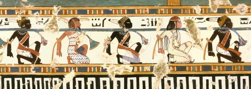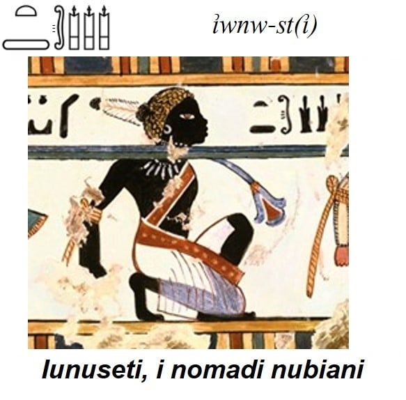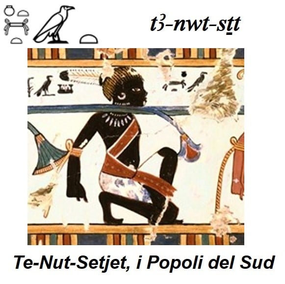 [6] L’iconografia dei Nove Archi, intesi come nemici dell’Egitto, è molto antica; il primo esempio si rinviene, infatti, sul piedistallo del trono della statua di Djoser a Saqqara, posti sotto i piedi del sovrano. Non esiste caratterizzazione dei popoli fino al regno di Amenhotep III; successivamente i Nove Archi varieranno a seconda delle condizioni diplomatiche o di attrito esistenti. Sotto la XVIII dinastia si annoveravano, tra gli altri, gli Haw-Nebwt, i popoli delle isole; gli Shwtyw, gli alto-nubiani; i Pedjetiw-Shw, “quelli del deserto orientale”; i Tjekhenw, i libici; mentre sotto Ramses II faranno la loro comparsa gli Hittiti, i Sangar (babilonesi) e Naharina, ovvero i mitanni.
