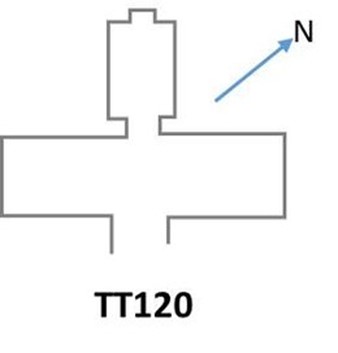La TT120 si sviluppa planimetricamente con forma a “T” rovesciata tipica delle sepolture di questo periodo. Un breve corridoio dà accesso ad una sala trasversale sulle cui pareti è rappresentato il raccolto del grano in presenza di Amenhotep III. Poco oltre, il re Amenhotep III e la regina Tye (sotto il cui trono si nascondono una scimmia, un gatto e un’oca), assisi in trono i cui braccioli sono costituiti da sfingi e sulla cui predella sono riportati i Nove Archi[6], ovvero la rappresentazione dei nove principali nemici dell’Egitto.