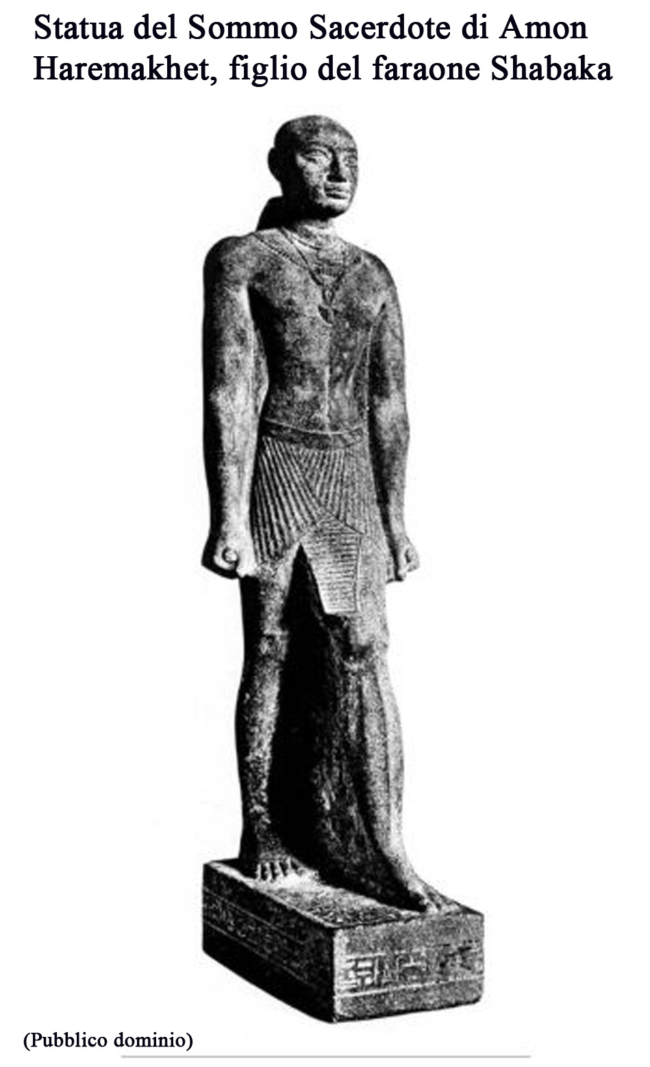 Va detto inoltre che nella statua del Sommo Sacerdote di Amon, Haremakhet, figlio di Shabaka, si definisce