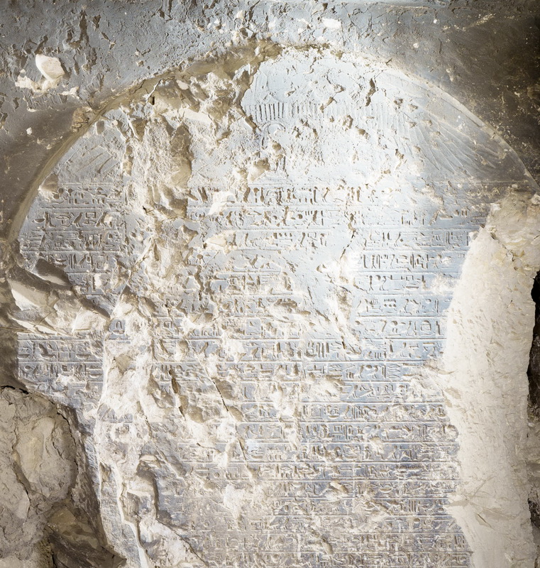 Una sala trasversale, tipica delle planimetrie a “T” capovolta delle sepolture del periodo, presenta sulle pareti: resti (3-4) di immagini del defunto e della moglie seduti e di figli che portano frutta e animali (non sono ricavabili i nomi, probabilmente nelle parti crollate); sul lato corto una stele (5) con inno a Amon-Ra-Horakhti[8] e testo autobiografico (?).