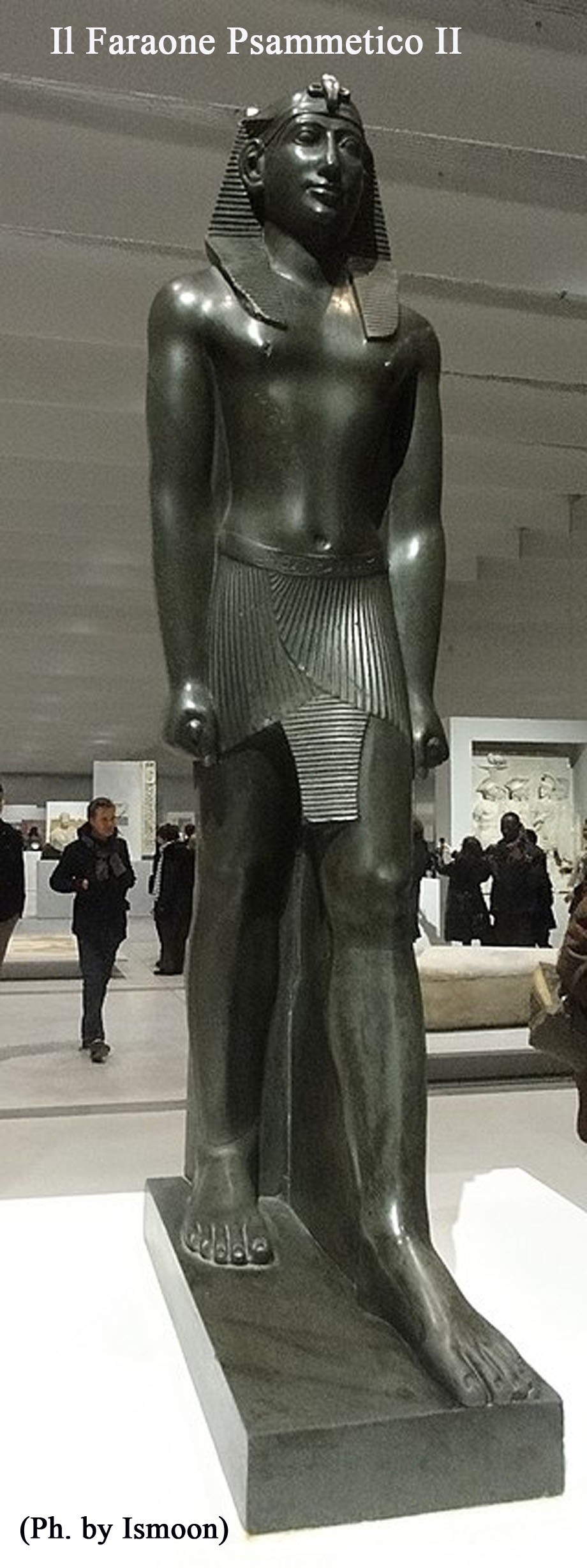 <<……Allorché il re Psammetico venne a Elefantina, questo fu scritto da coloro che navigarono con Psammetico figlio di Theocles, e si spinsero oltre Kerkis fin dove il fiume lo permette. Coloro che parlavano lingue straniere erano guidati da Potasimto, gli Egizi da Amasis……>>.