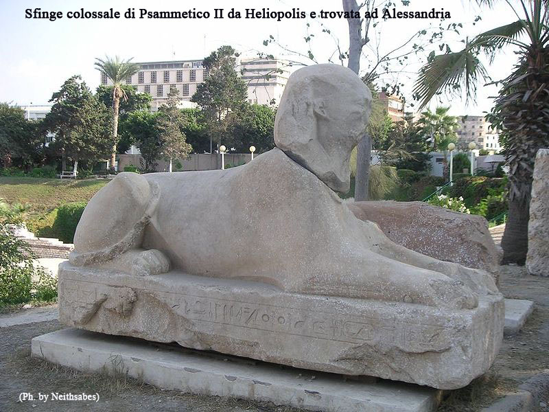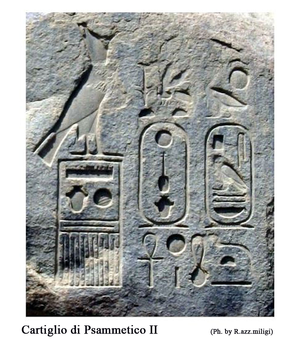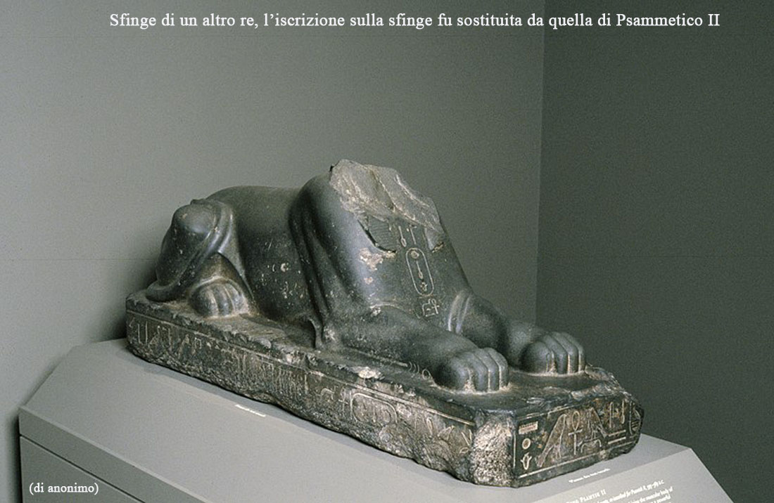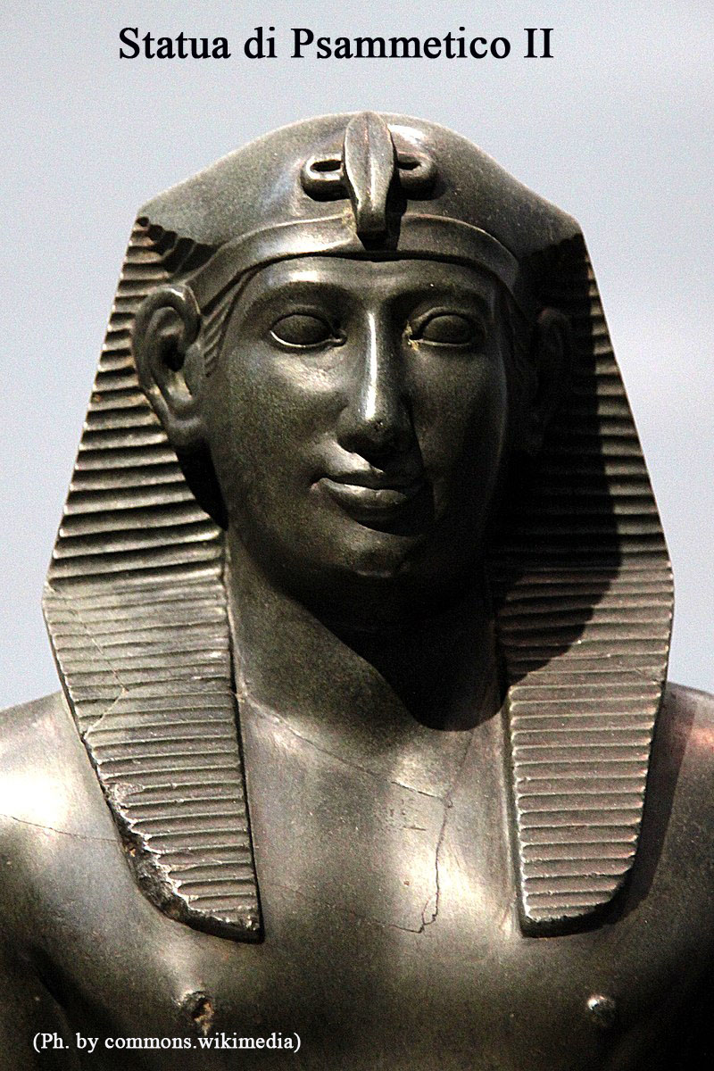 Psammetico II non perse tempo, celebrò il suo giubileo dopo pochi anni di regno e per l’occasione fece erigere ad Eliopoli due obelischi di granito alti circa 30 metri dove il faraone è raffigurato in forma di sfinge con i consueti titoli onorifici.