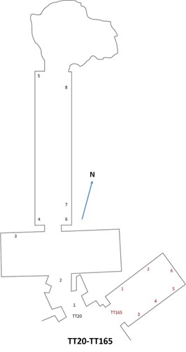 [1] La prima numerazione delle tombe, dalla n.ro 1 alla 253, risale al 1913 con l’edizione del “Topographical Catalogue of the Private Tombs of Thebes” di Alan Gardiner e Arthur Weigall. Le tombe erano numerate in ordine di scoperta e non geografico; ugualmente in ordine cronologico di scoperta sono le tombe dalla 253 in poi.