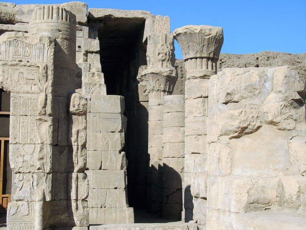 Questo piccolo tempio è costruito su un asse est – ovest, dunque è quasi ortogonale rispetto al tempio di Horus.