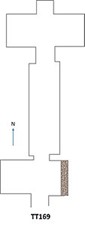 TT169 si struttura, planimetricamente, con una sala trasversale da cui una sala perpendicolare alla precedente adduce a una seconda sala trasversale a simulare una “I”. Molto danneggiata presenta sulle pareti della sala perpendicolare resti di scene e testi; scene di preti officianti la Cerimonia di apertura della bocca sulla mummia; il defunto e la moglie con una figlia (?), che reca lo stesso nome della madre Maatka, con arpisti e liutisti in offertorio ai genitori[9].
