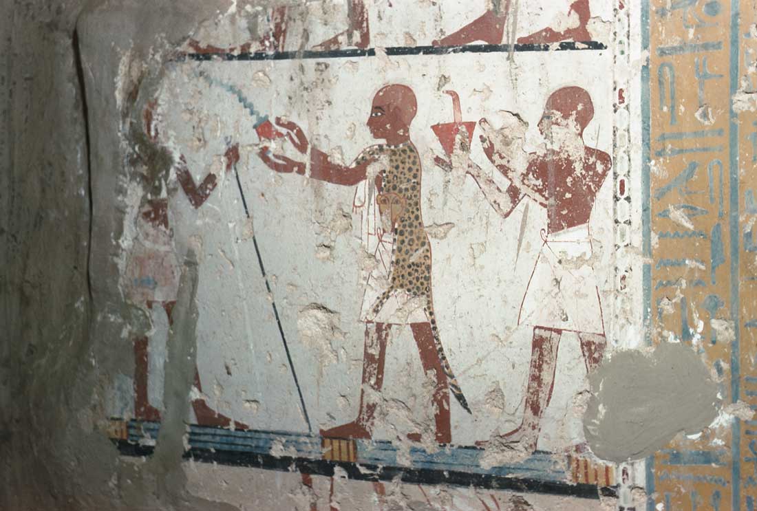 Poco oltre (3), su due registri, liste rituali, preti che purificano il defunto e portatori di offerte.