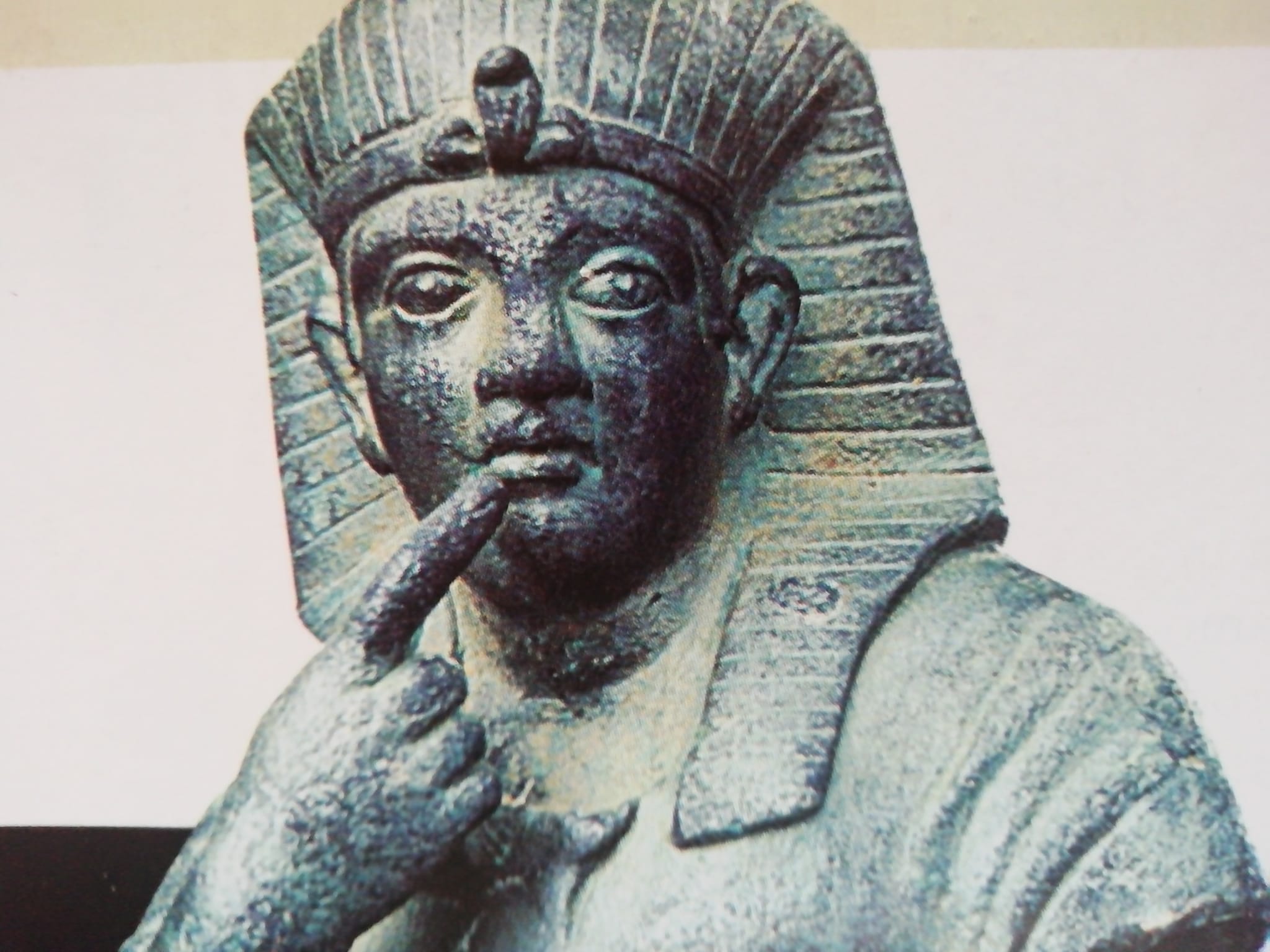 Il dio porta il dito alla bocca nell’atteggiamento tipico di Arpocrate e indossa il nemes.