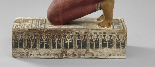 Il fregio ornamentale sulla base della statua è formato dai geroglifici per vita, ankh, e dominio usa.