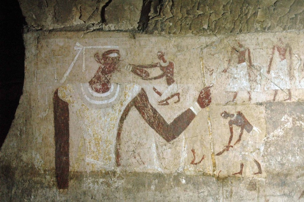 Precedentemente erano accessibili solo gli stipiti d’accesso, su cui è identificabile il defunto, dotato di scettro Kherep, con alcuni collaboratori[6].