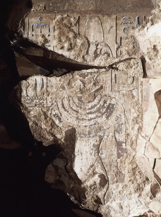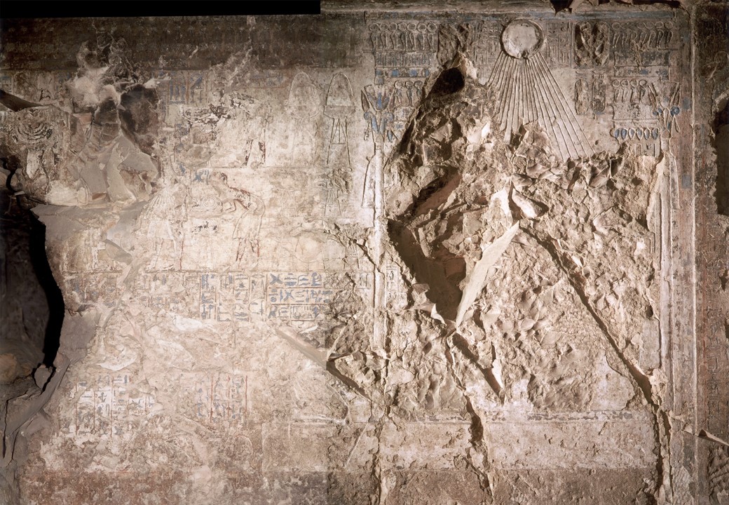 Su una stele (1 in planimetria[6]) i resti di scena con Amenhotep IV[7]/Akhenaton]] e una regina[8] [9] dinanzi al sole raggiato (Aton).